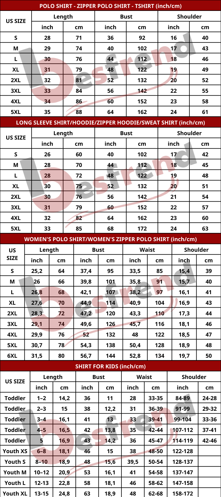 • Please review the size chart carefully before ordering.