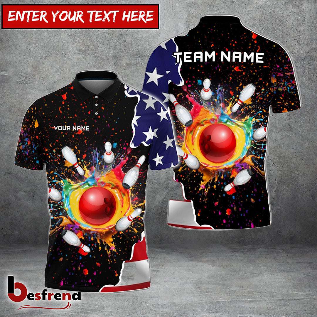 Besfrend Bowling And Pins Colorful Paint Flag Personalized Name Team Name 3D Shirt