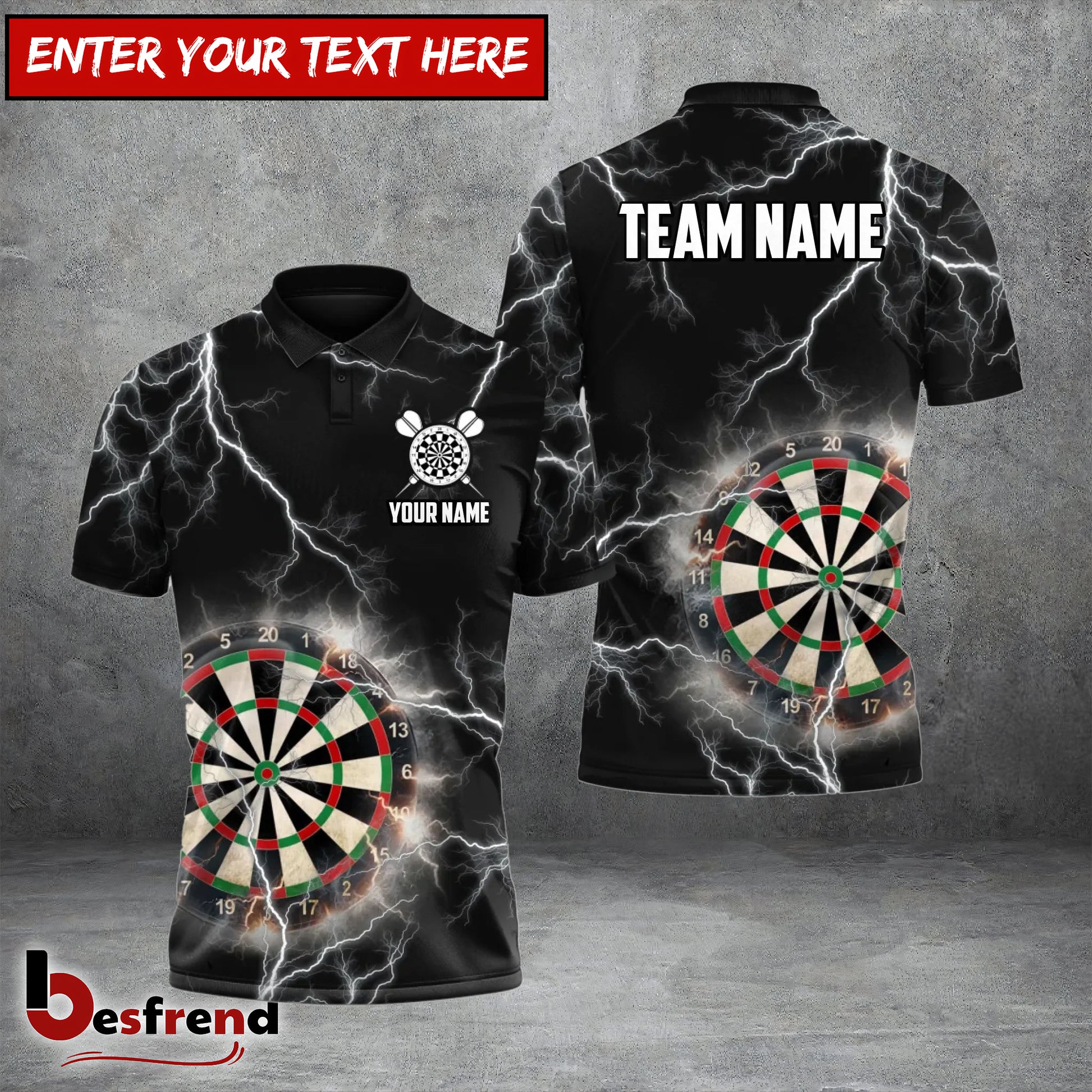 Besfrend Darts Thunder Lightning Personalized Name And Team Name Shirt
